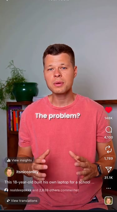 We make viral short form content with your AI avatar and cloned voice, so you can post a new video every day, without ever pressing record on a camera.